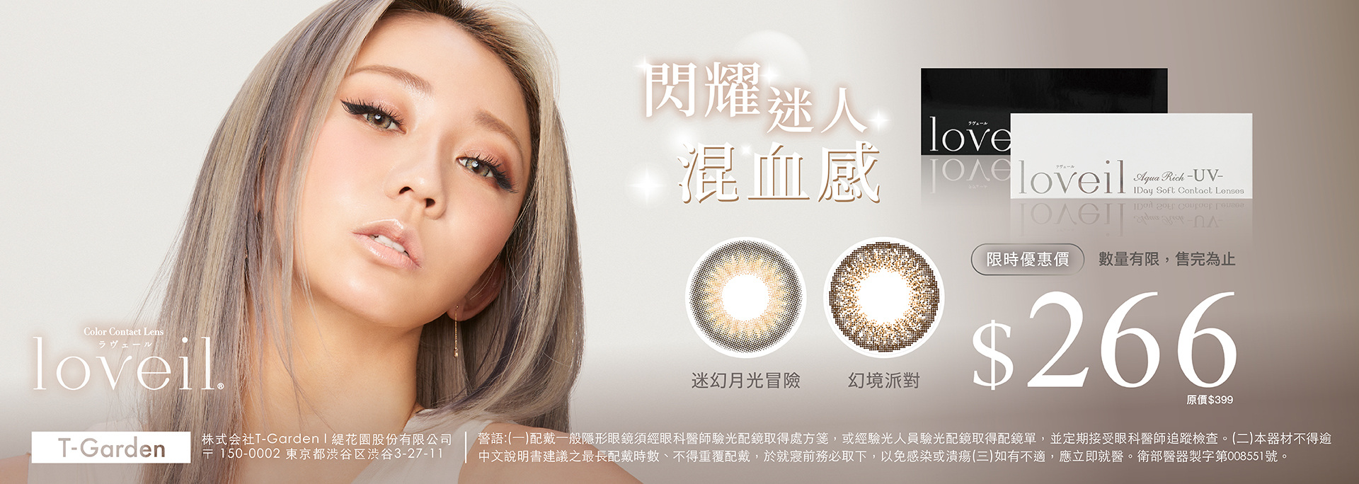 T-Garden loveil酗愛情珍珠灰AshGrege彩色日拋10pcs