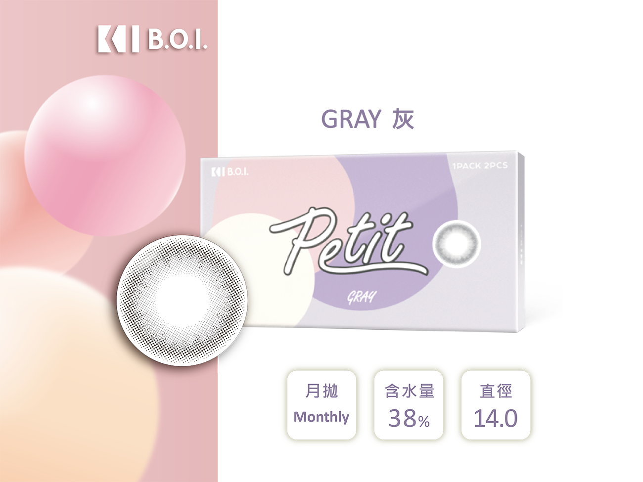 B.O.I. PETIT灰Gray彩色月拋2pcs