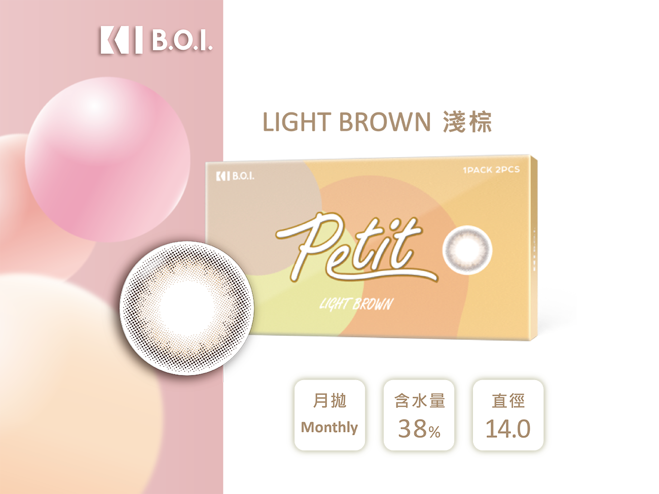 B.O.I. PETIT淺棕LightBrown彩色月拋2pcs