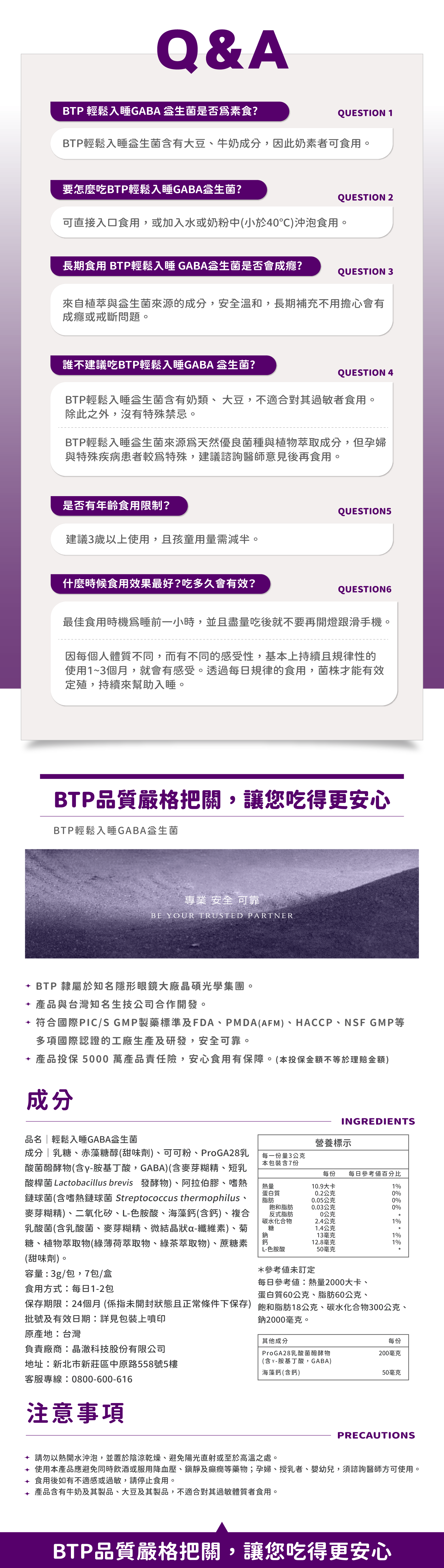 商品名稱:BTP 輕鬆入睡GABA 益生菌粉包3g 7入